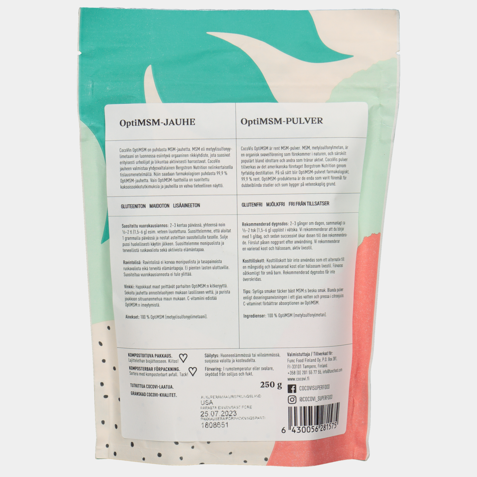 - Ainesosat: 100 % OptiMSM (metylsulfonylimetan)