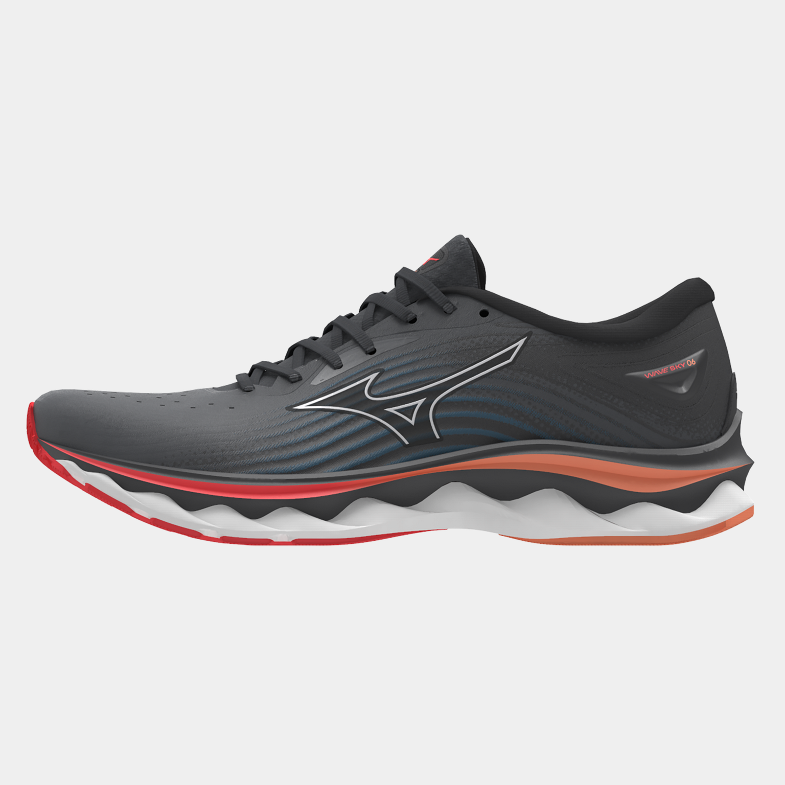 Mizuno on sitoutunut kehittämään kestäviä tuotteita. Wave Sky 6 -kengissä Mizuno on käyttänyt kierrätysmateriaaleja useissa komponenteissa pienentääkseen ilmastojalanjälkeään tinkimättä toiminnallisuudesta, mukavuudesta ja kestävyydestä.